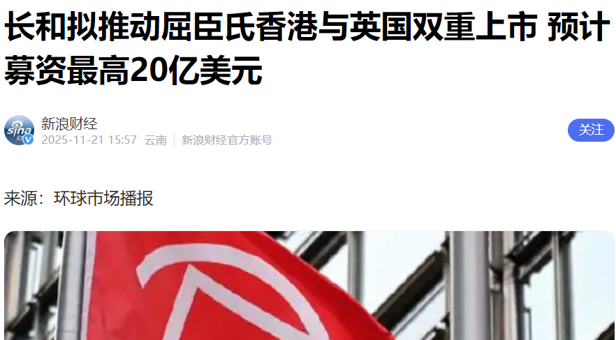 日前,环球市场播报在报道中援引知情人士消息称,中国香港首家上市企业长江和记实业有限公司(以下称“长和”)拟推动屈臣氏在中国香港及英国两地上市。
