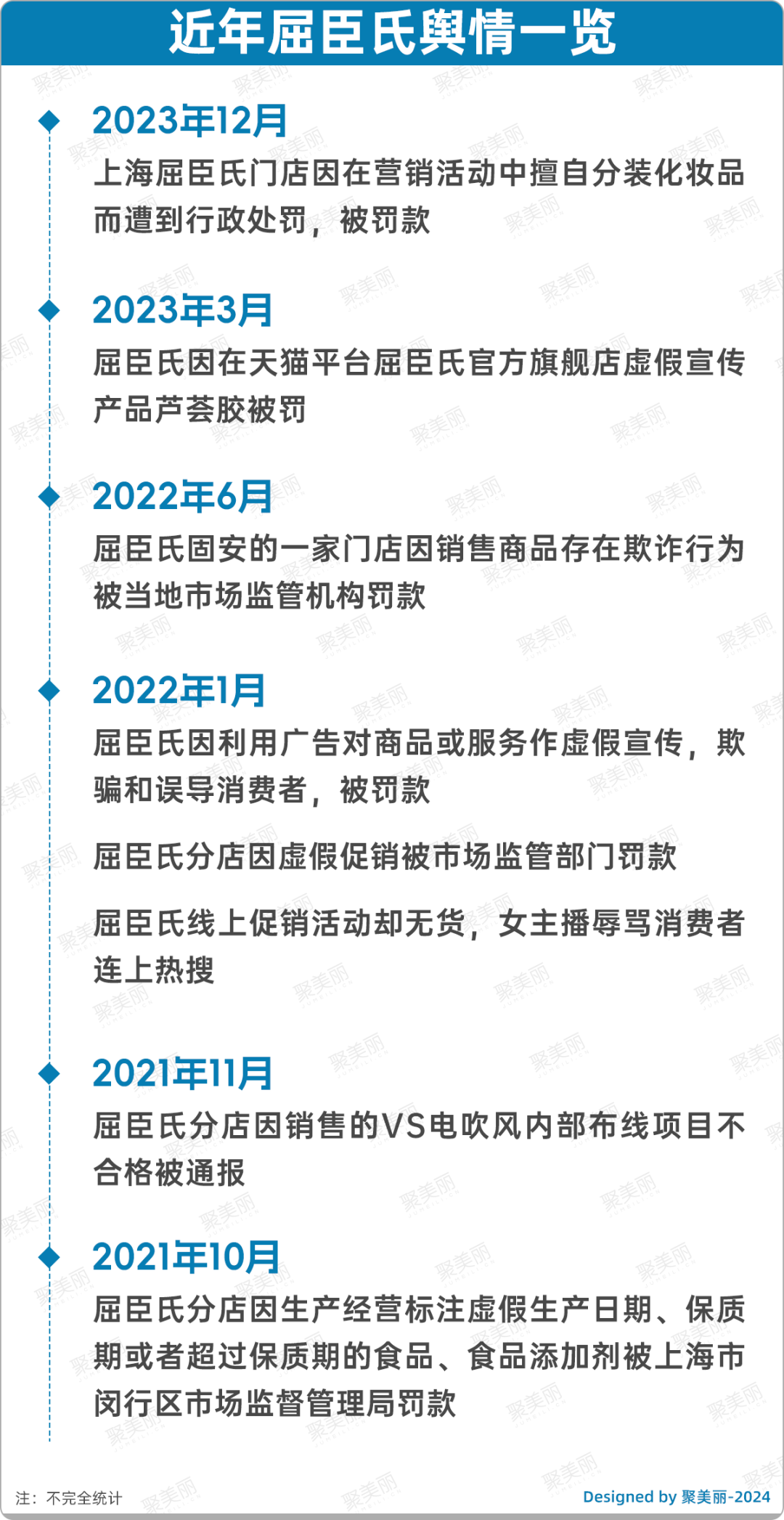 另外,还需注意的是,屈臣氏近年来因屡次踩中监管红线被罚,包括营销活动中擅自分装化妆品、虚假宣传芦荟胶等行为,而导致品牌形象受损。