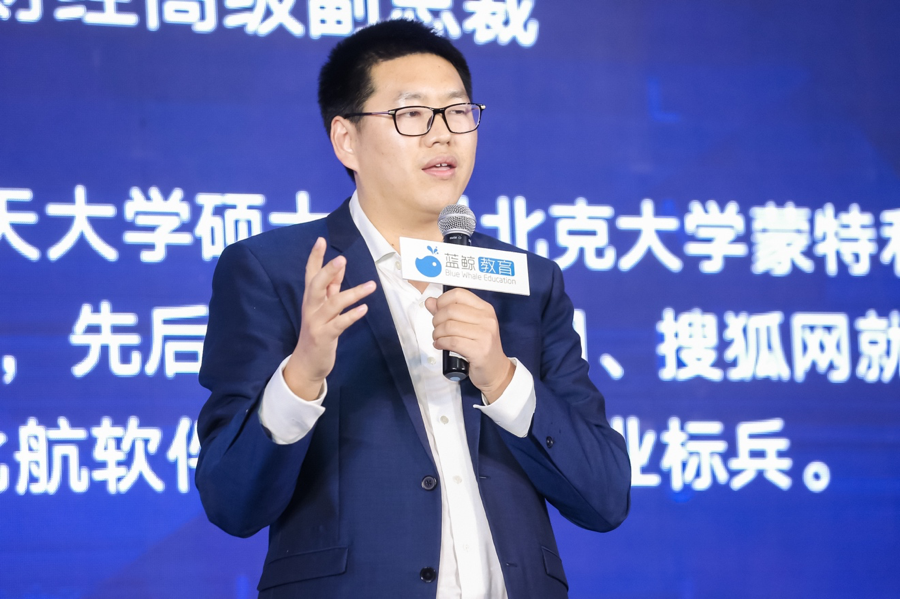 大会伊始,蓝鲸教育总裁、蓝鲸财经高级副总裁刘瑞刚率先致辞,他以诚挚的热情感谢在场嘉宾的莅临。