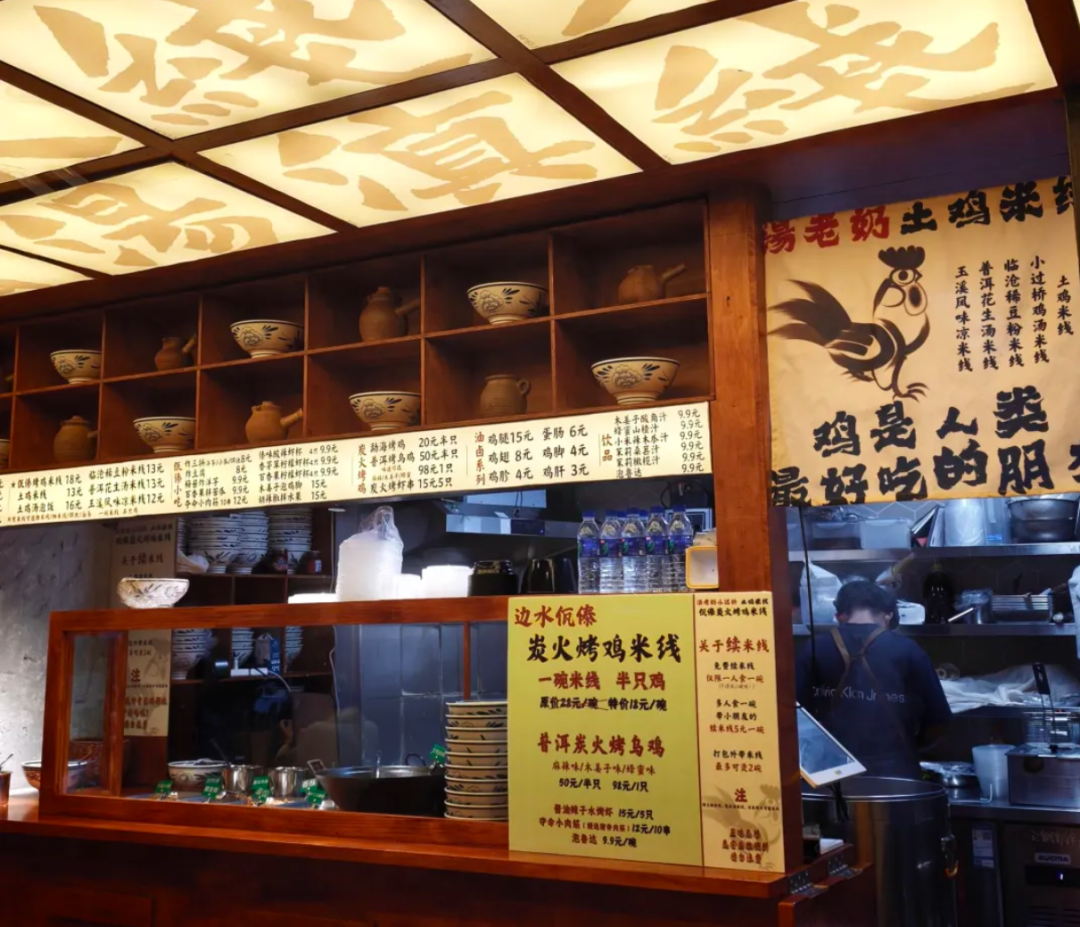 红餐网还注意到,“版纳烤鸡”本就是云南特色小吃,在当地大多米线店都有这款单品。以昆明为例,大众点评城市美食榜米线排行前二十的门店中,过半都有烤鸡产品。