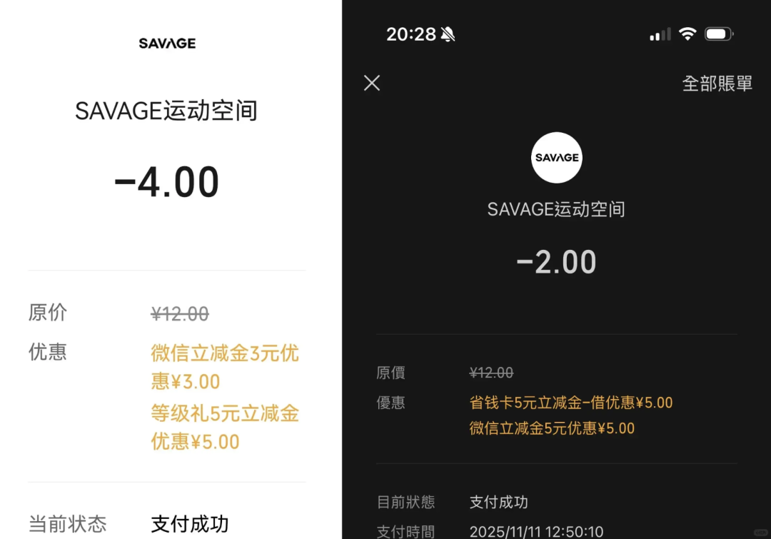 这是Savage为了庆祝北京、上海、深圳三城四店新开业,推出的「探索课包」优惠活动,12元课包内包含69元团课四节,89、109和单车课各两节,总价值810元。而从小红书网友们的分享中,12块还不是最低到手价,叠加银行卡等其他渠道优惠后只花个位数拿下10节团课的比比皆是。