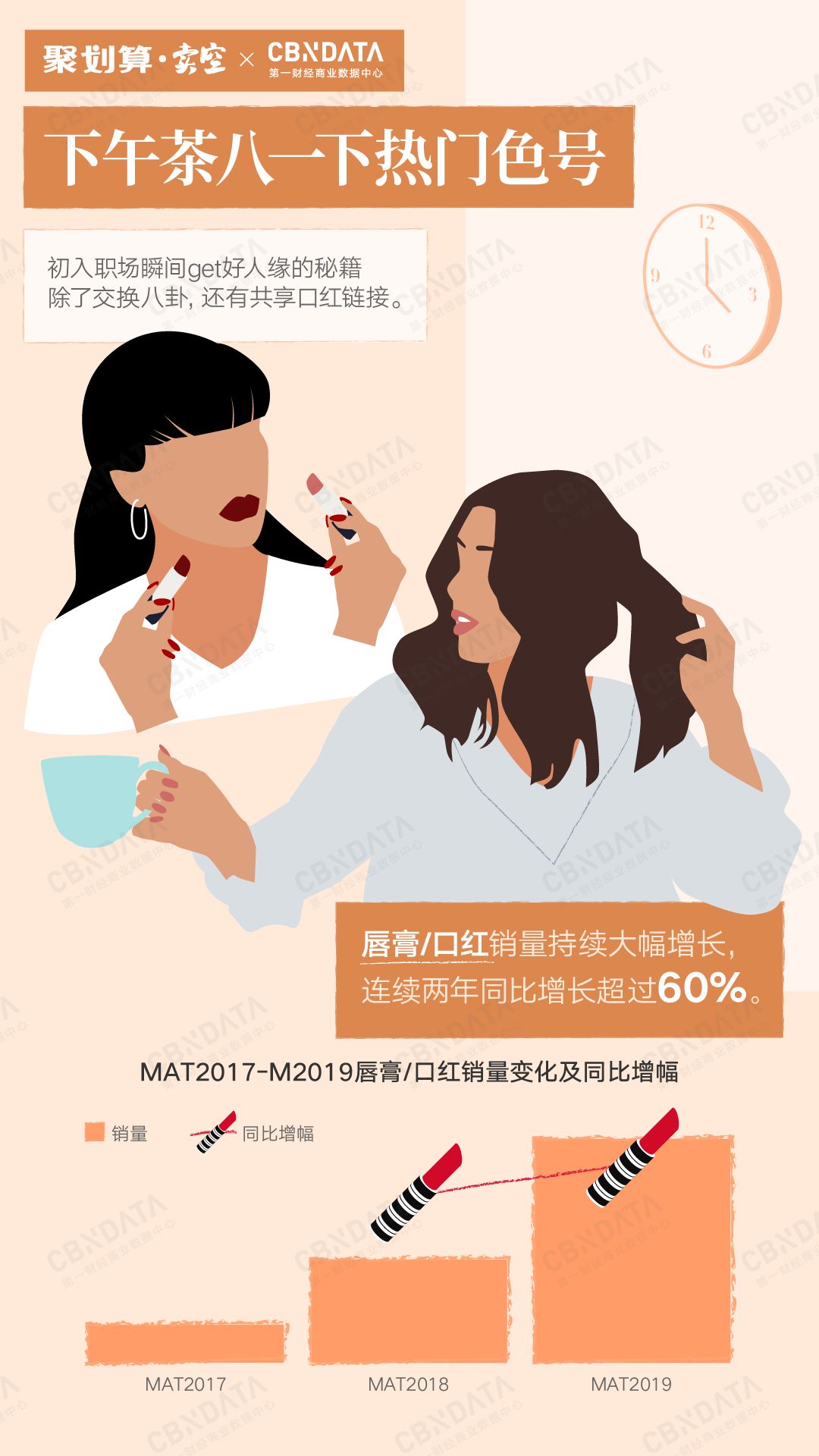 其中唇膏、口红销量持续大幅增长,连续两年同比增长超过60%。可见用一只口红愉悦心情已经不再只是大都市白领的专属,小城姑娘们一定程度上也拥有了口红自由。