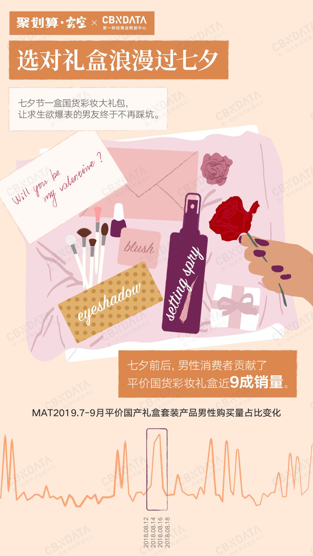 值得注意的是,彩妆礼盒也成为小城情侣七夕送礼的好选择。CBNData《报告》显示,在2018年七夕前后,三线及以下城市男性消费者贡献了平价国货彩妆礼盒近9成的销量。