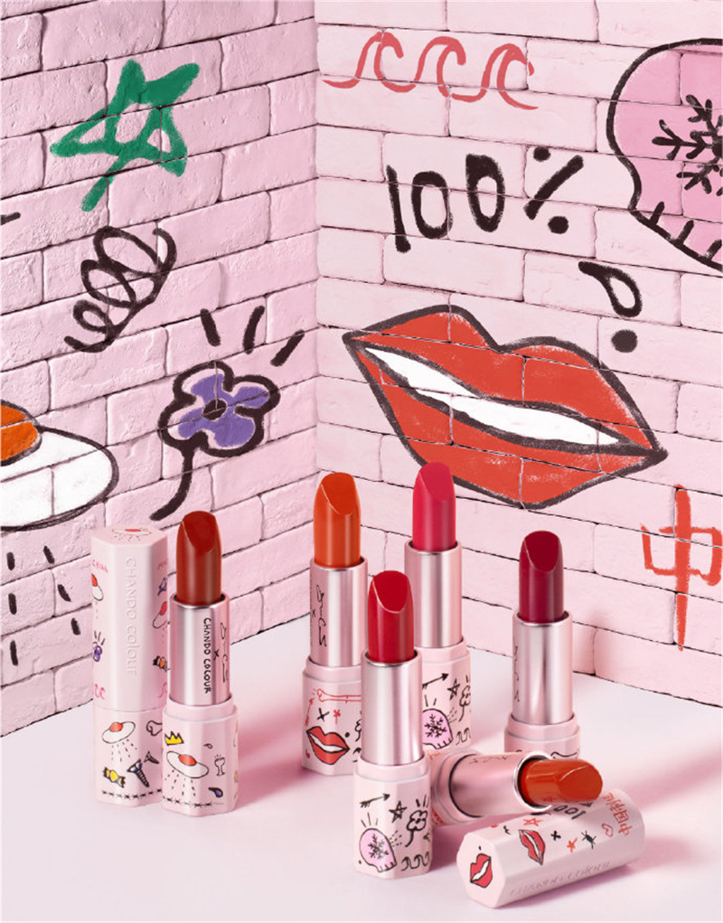 此次与自然堂的联名由Trevor Andrew亲自操刀,为自然堂炫彩唇膏设计了全新的包装。以充满少女心的粉色为底色,融入简单且富有趣味性的街头涂鸦元素:红唇、骨头、荷包蛋飞碟、糖果、丘比特的箭等,形成了时尚与童趣兼顾的视觉享受。