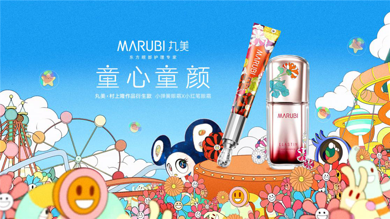 “在村上隆创作的超扁平缤纷世界中,唯一不变的是对‘幼稚’的表达,他相信童心的力量能够征服世界。”丸美负责人表示“幼稚力即是年轻力,是我们双方合作的契合点。”