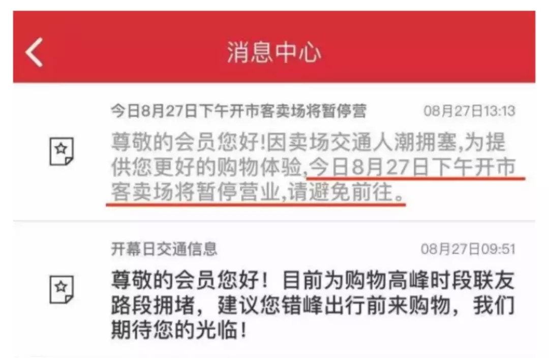 11:30,Costco开始通过短信通知注册会员错峰出行,13:30,官方App推送消息,下午关闭营业。