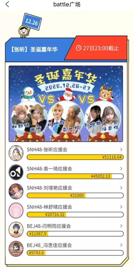 一种常见的玩法是:选择实力相当的竞争对手battle,两家你来我往竞争激烈,从而刺激粉丝更加快速投钱。应援站长们之间会提前协商好规则,再发起活动链接交给平台审核。