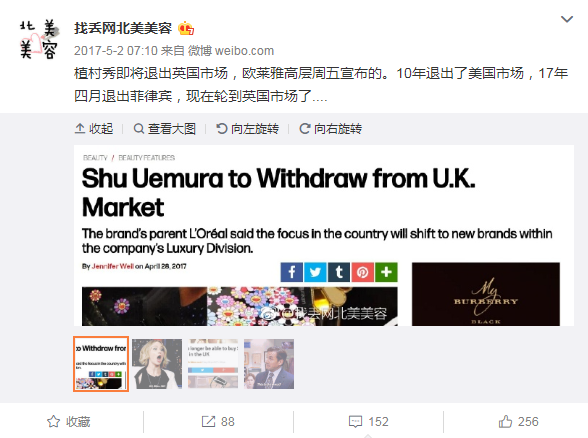 早在2010年,WWD就有报道称,植村秀品牌将关闭在美国的所有业务。此后,2017年又传出植村秀品牌退出菲律宾和英国市场的消息。