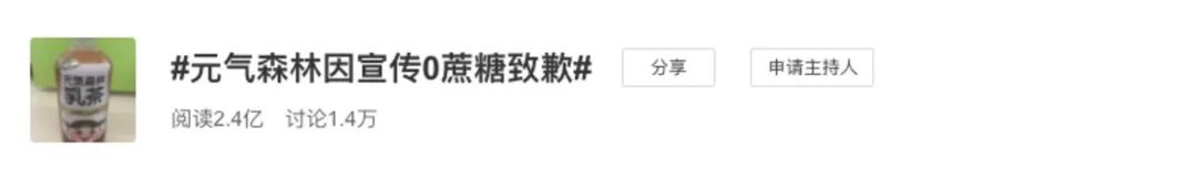 这两天,元气森林因其乳茶产品“0蔗糖”的宣传语容易引发误解道歉,此事还冲上了热搜。