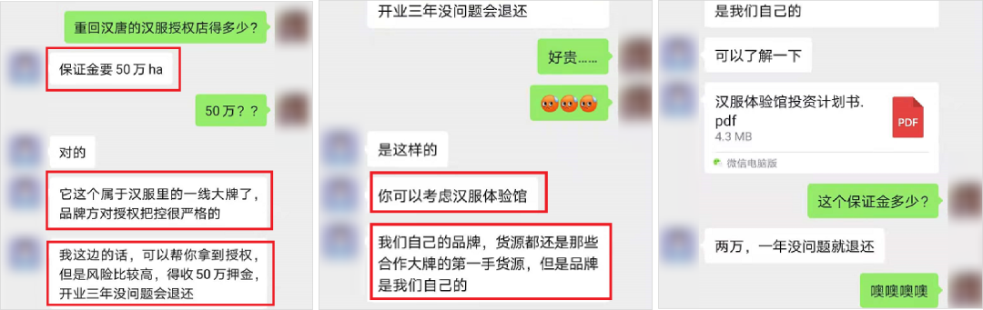 可能是怕我不放心,对方一再强调,这是他们自主研发的项目,现在加盟不仅可以享有极高的优惠,也能通过他们的“关系网”得到大牌汉服的第一手货源。
