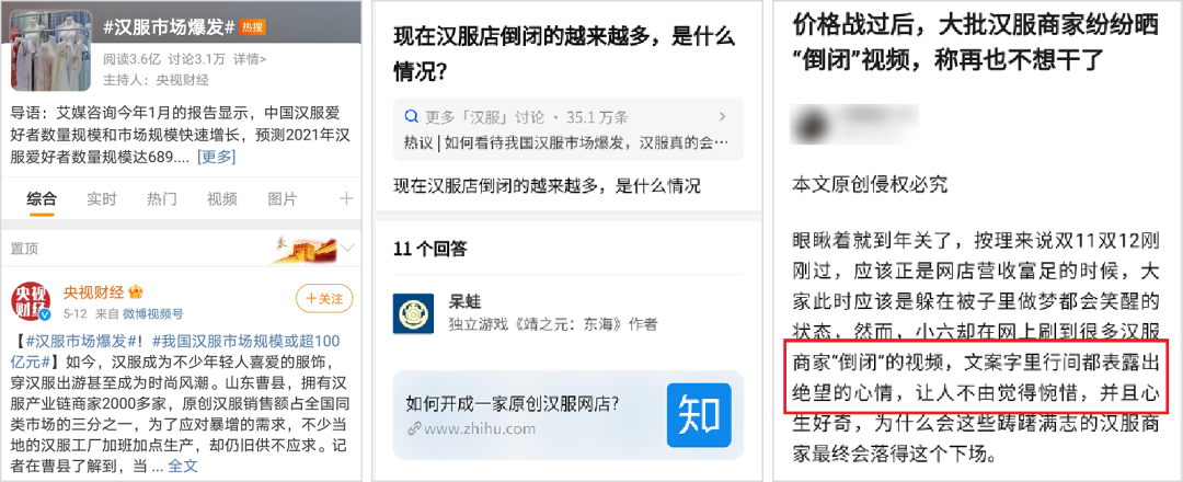 一方面,热搜上说“汉服市场爆发,线下店人满为患”;