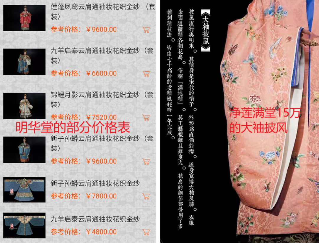 明华堂的顶级重工汉服,他们的加盟商只需半价就可以购买。