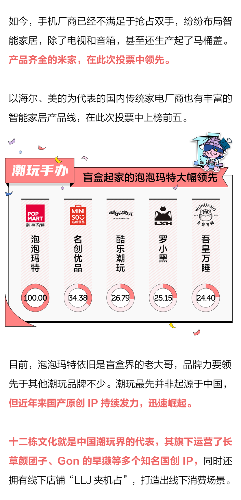 品牌指数的计算基于读者的投票,在每一细分品类中,以投票数最高的品牌为 100 进行指数化处理。