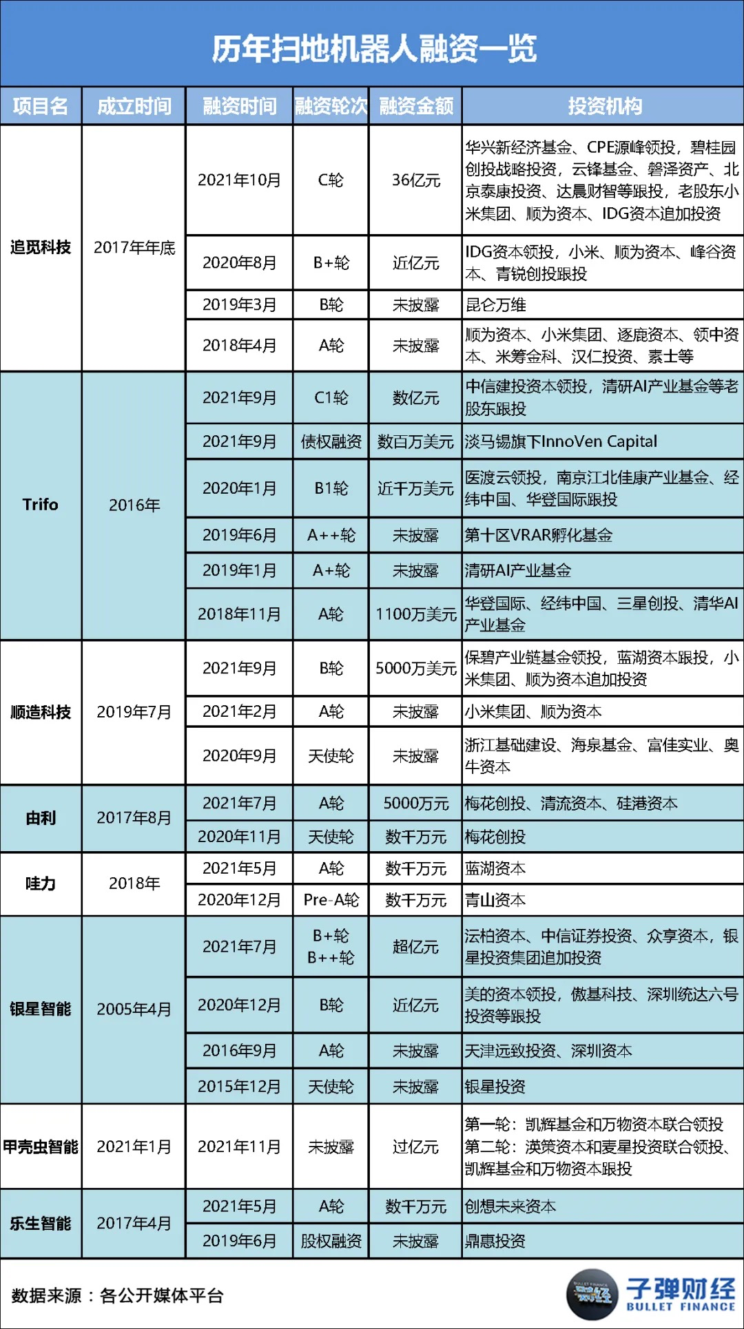 此外,其同行追觅科技、Trifo、顺造科技、由利、银星智能、乐生智能和哇力等也在今年完成一至两轮融资。