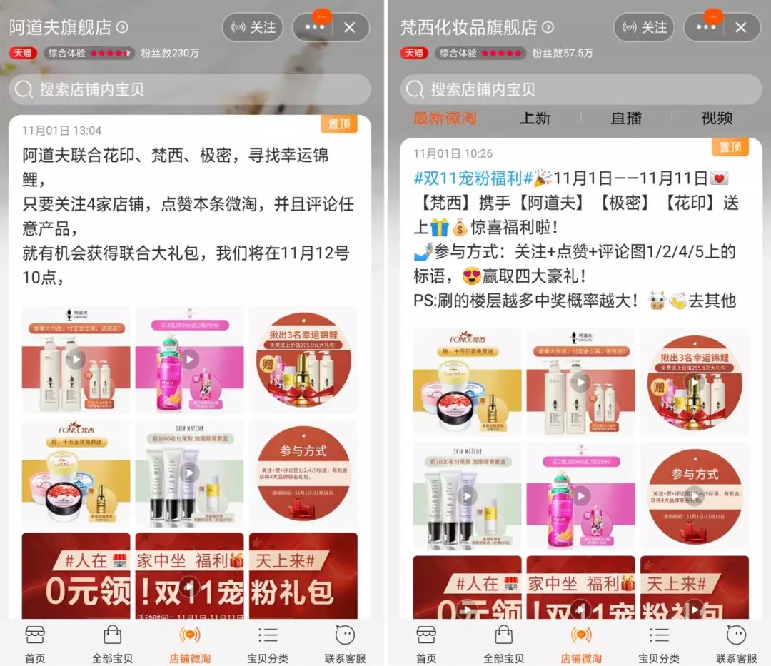 店铺微淘互发,“好物种草”与“主题清单”这两个形式的微淘,在发布的时候,添加宝贝是可以跨店铺的,也是别家的产品链接可以在你家的微淘里发布,这样大家互推,人群也是精准的,对于商家在推广经费有限的情况下,这样在双11冲刺的7天里,还可以免费拉新转化一波。