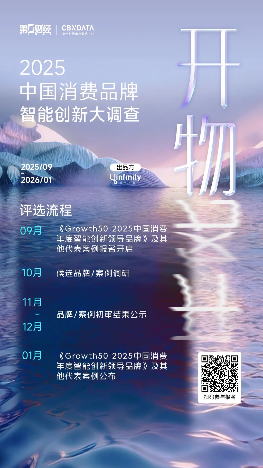 因此,第一财经与第一财经商业数据中心(CBNData)重磅发起「开物·2025中国消费品牌智能创新大调查暨 Growth 50 案例评选」。我们希望与品牌同行,以智能为羽翼,以创新为罗盘,在变革的浪潮中开疆拓土,共同探索消费的下一个时代。