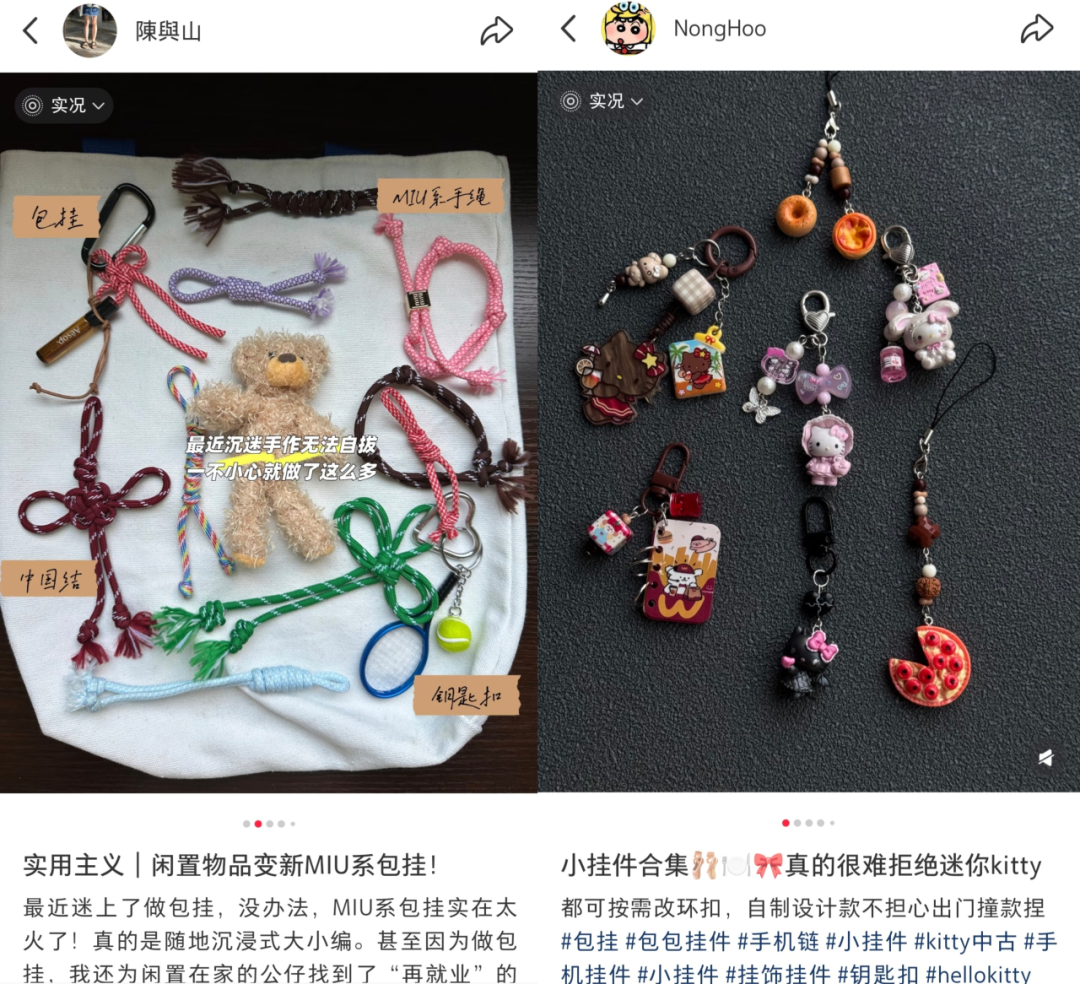 相比于普通尺寸的公仔或玩偶,萌粒玩法多样,是非常好的可供创意改造的DIY素材,这种可玩性也是萌粒的独特优势。小红书上有很多「萌粒改娃」分享,手机链钥匙链、相机热靴盖、车载挂件等等都是常见的实用型改造方式;闲鱼和微店上还有以此为业务的个体商家,萌粒改造手机链的均价在35元左右;还有追星的玩家会定制「真人形象萌粒」,价格在80-150元不等。
