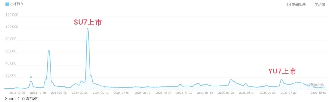 正如小米SU7,以30万级价格提供2.78秒零百加速、800km续航及生态互联等硬核体验,惊艳了市场,消费者印象深刻。到了YU7,对比竞品各有胜负,做到了可圈可点但“毫无波澜”,因此哪怕销量更高,热度却远不如SU7。