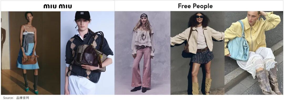 嗅到这股风向的时尚品牌,迎合着消费者的新口味,如正当红的MiuMiu就主打一个“叛逆洒脱”,FP Movement母品牌Free People也是以热烈、自由奔放的波西米亚风格闻名。