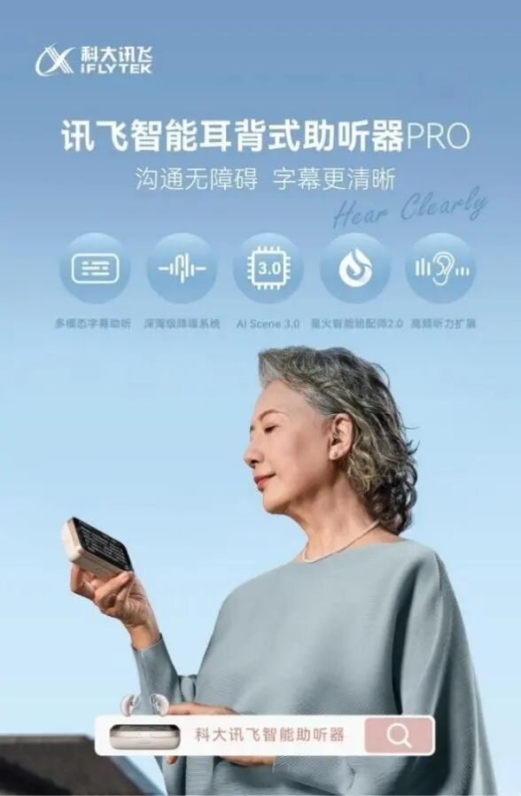 科大讯飞凭借其在中文语音识别领域的深厚积累,推出了专为中重度听损人群打造的AI助听器产品,其核心优势在于对中文语音的精准识别和优化,特别是在方言处理方面具有明显优势。并且还能够实时将语音转换为文字显示在配套App上,为重度听力障碍者提供了"看见声音"的可能。这种多模态的辅助方式,突破了传统助听器单纯依赖听觉的局限。