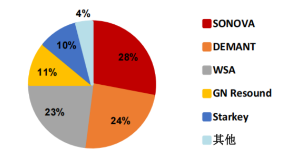 当前,全球助听器市场几乎被国际企业垄断。根据上海证券研报,海外五大巨头瑞士SONOVA听力集团、丹麦DEMANT集团、丹麦GN ReSound听力集团、美国斯达克Starkey和WS Audiology听力集团占据了95%以上的市场份额。