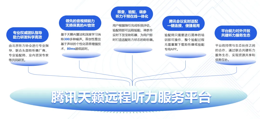 这种AI辅助验配的模式,也为远程验配提供有力的现实支撑。腾讯的“天籁Inside”音频AI技术,通过整合助听器线上测听和验配,完善天籁自研助听器算法解决方案,开发了基于腾讯会议的远程验配系统和面向听障人士的ASR识别系统,让线上验配成为线下验配的补充,并帮助听力师和听障人士借助腾讯会议和远程验配系统实现端到端的链接,实现远程线上交互。