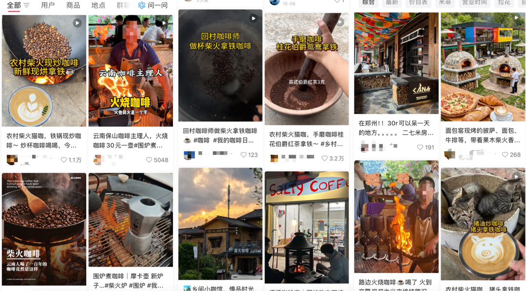 有人支起大铁锅,用大火烧柴的方式“炒咖啡豆”,再用蒜臼捣碎,最后用摩卡壶在铁锅里萃取,看起来“锅气十足”;有人直接把咖啡豆放入木炭燃烧后的草木灰里,试图“焖熟”,让咖啡自带“草本风味”;还有人脑洞大开“盐焗豆子”。
