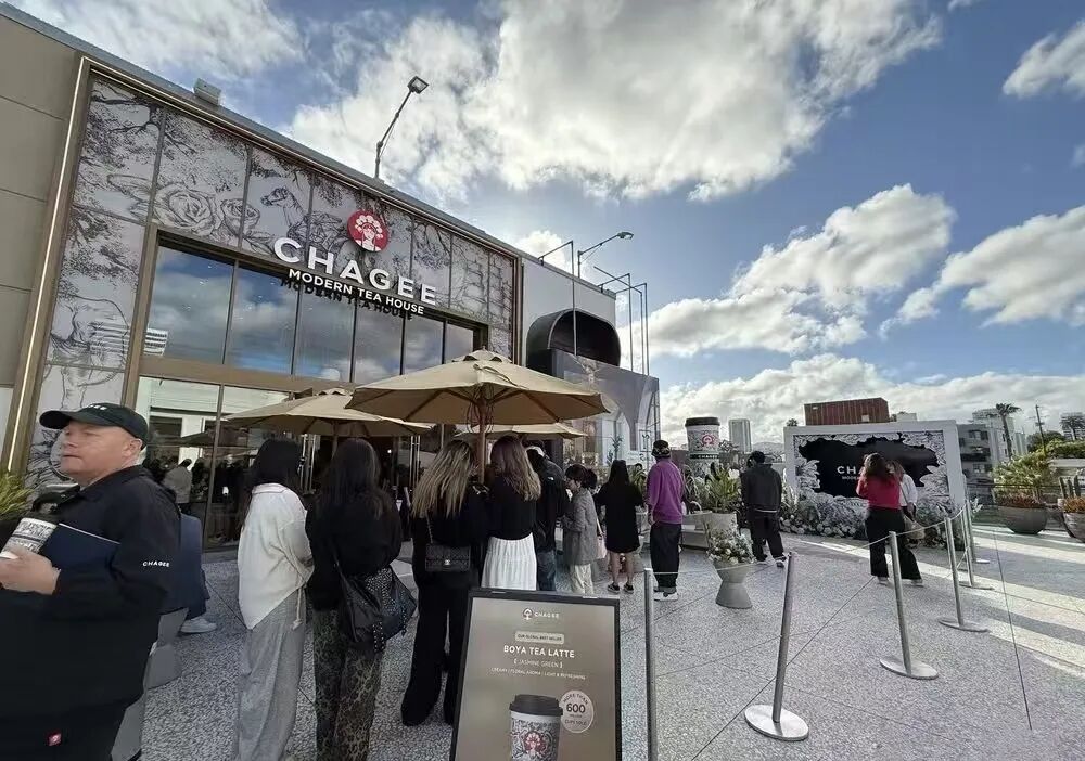 霸王茶姬的海外门店设计,以木质元素、水墨画和茶文化符号为主,同时融入了现代简约风,打造出兼具文化底蕴和时尚感的消费空间。这种“高颜值”设计,迅速吸引了美国年轻消费者的关注,成为社交媒体上的热门打卡地。