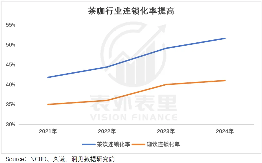 数据显示,茶咖连锁化率持续提升,2024年茶饮连锁化率已达到51%,但行业整体门店数却在减少。