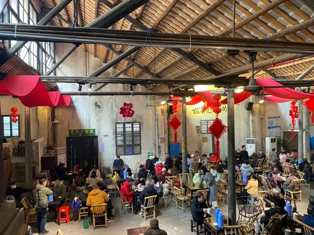 从选址上看,老茶馆基本上都避开了商业黄金地段,并且通过改造既有建筑降低前期投入。比如,东茅街茶馆坐落在与繁华黄兴路步行街一街之隔的市井深巷中,利用废弃工厂礼堂改造而成;南昌民德路茶馆则由市政府礼堂改建;初恋茶馆由1979年的供销社“爆改”而来;大旗茶馆由成都漆器工艺厂改造而来……