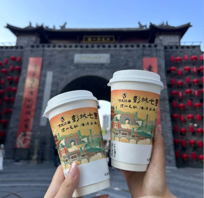 跟江西鲲茶一样,来自徐州的云龙让茶,也凭借突出的地域文旅特色,成为当地明星茶饮品牌。据了解,云龙让茶主打“一杯属于徐州的原创轻茶”的理念,在徐州开一家火一家。数据显示,云龙让茶在徐州已开出了8家门店,各大门店稳居大众点评区域饮品榜前三,高峰期甚至需排队1小时。