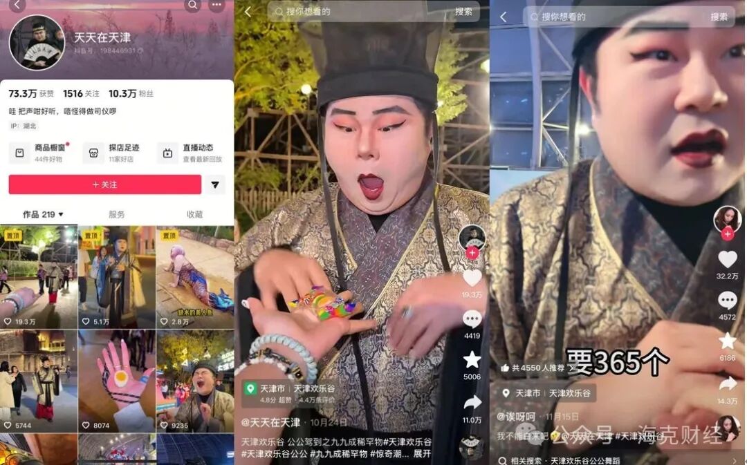 曾在天津欢乐谷、长沙世界之窗等多个景区游玩的00后小陈对海克财经表示,她开始只是将与NPC的互动发到微信朋友圈,结果“引来哇声一片”,由此才决定发到抖音;这些互动视频有的点赞量能够超过1万,远高于她平时的个人生活内容视频。