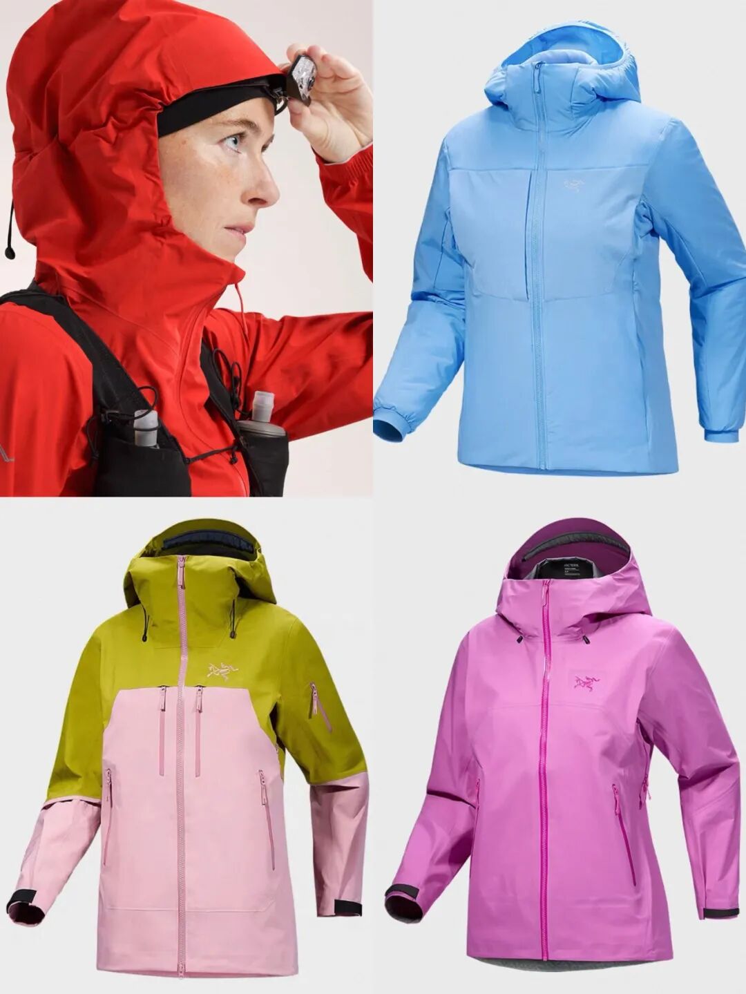 而2025年的这个秋冬,剁椒Spicy注意到,一、二线城市的始祖鸟门店内,新增了不少色彩更加明亮、个性的女款产品,包括惠斯勒蓝的滑雪羽绒夹克、榄苔绿与贝粟粉拼接撞色的滑雪夹克、山菀紫的棉服、晨曦粉的硬壳冲锋。
