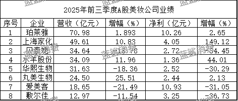 随着2025年三季报收官,A股上市的美妆企业陆续交出成绩单,能够在前三季度保持业绩增长的美妆企业并不多,不少美妆企业已经逐渐褪去了原来的“光环”,如今正面临较大的发展压力。