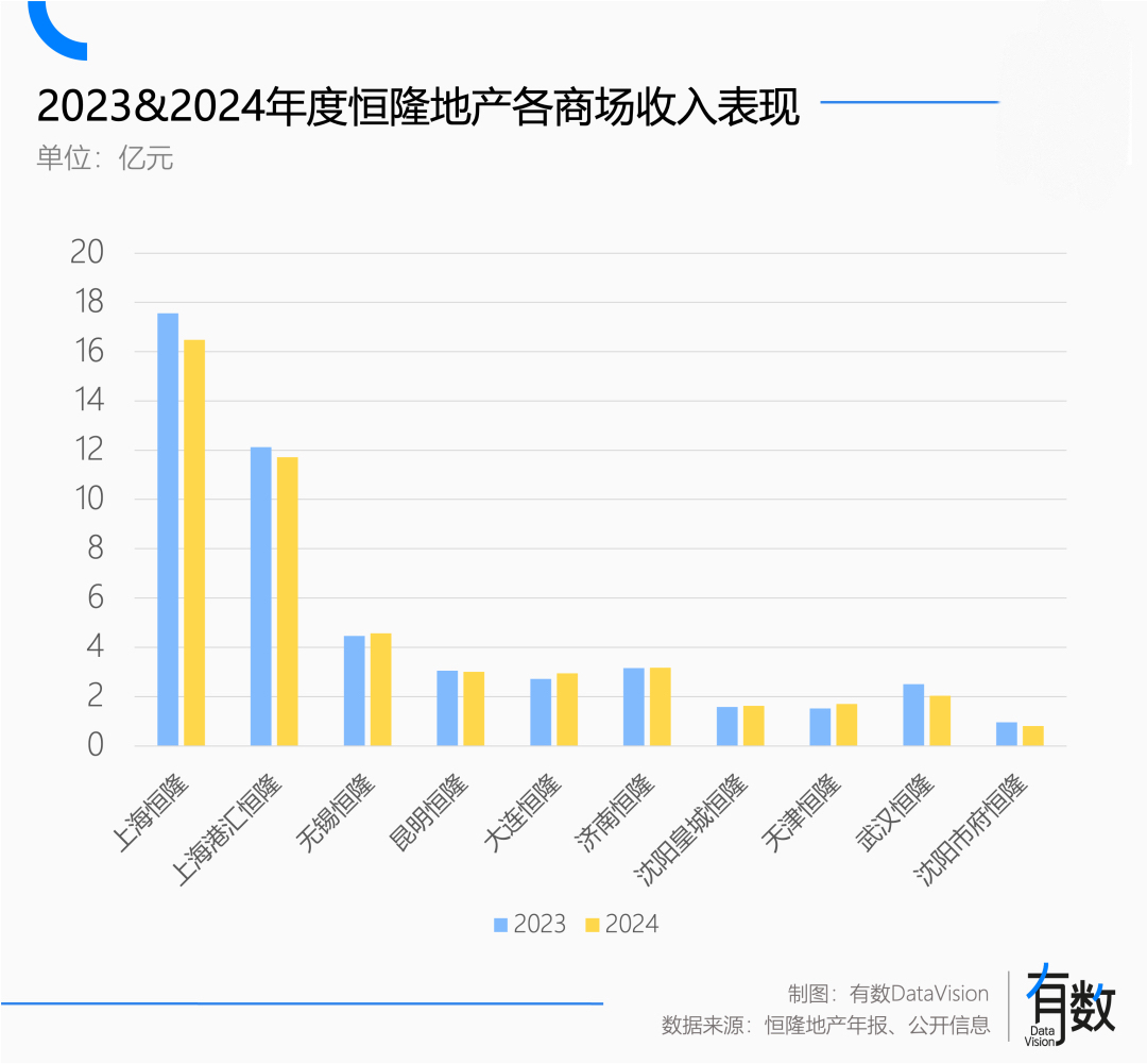 从恒隆地产的经营情况看,早在2024年,中国大陆各个商场的收入就呈现下滑趋势,2025年虽然有所回升,但整体依然没有回归增长趋势。