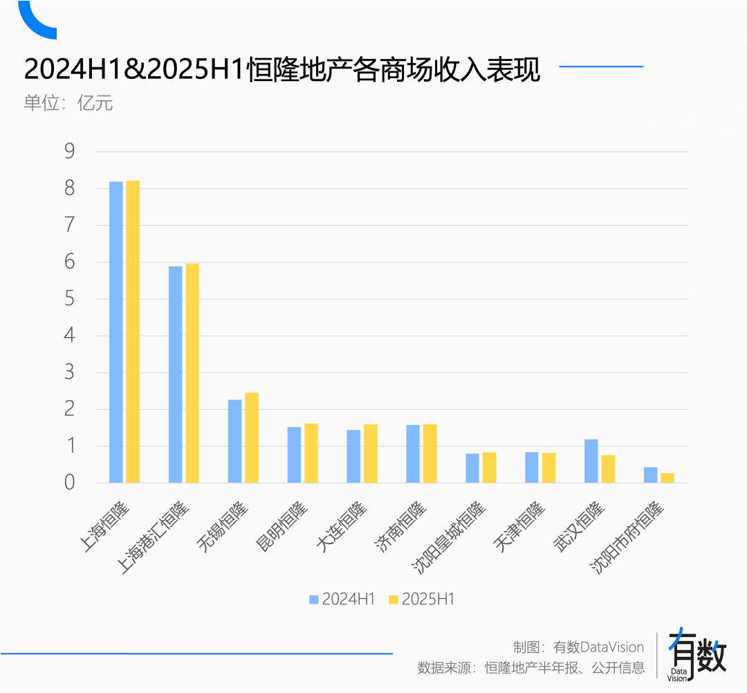 租客开始割肉,房东就没办法收粮。按照25年上半年的口径,恒隆在武汉和沈阳的两个项目,租赁收入同期对比分别下降36%和37%[1]。上海兴业太古汇和前滩太古里租金收入,分别下降6%和10%[2]。
