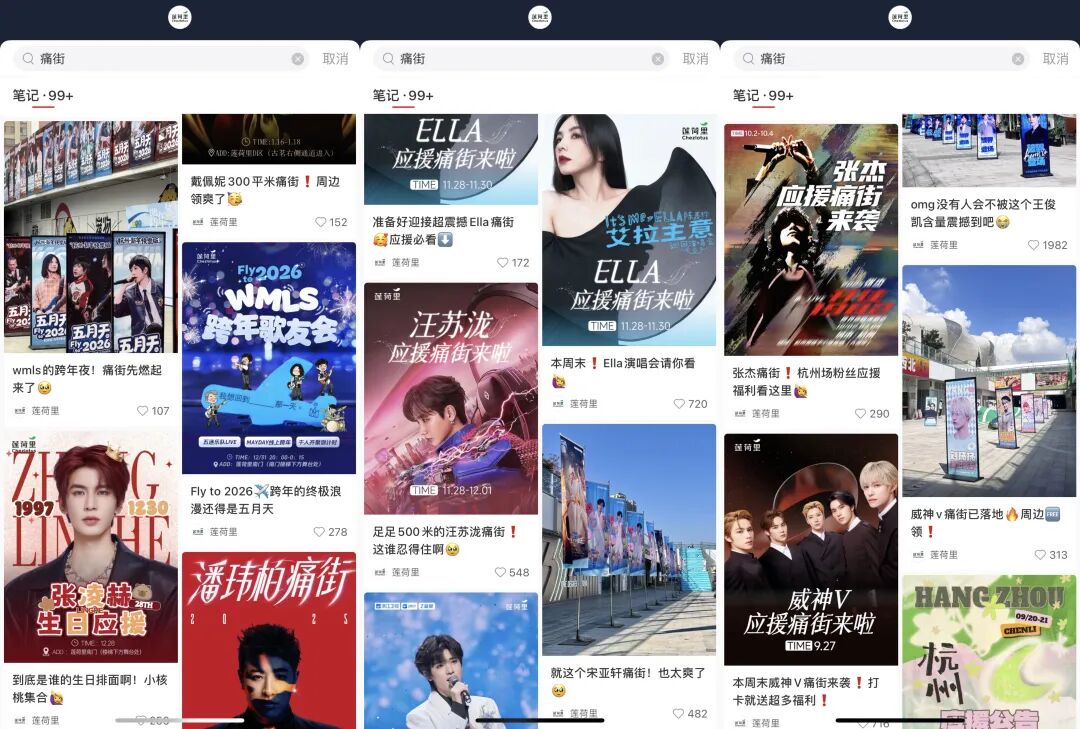 这种模式与杭州的“莲荷里”形成了有趣的对照。莲荷里同样以打造“痛街”闻名,但其核心是围绕明星演唱会衍生的粉丝应援经济。从巨型气模到定制周边,其运营逻辑与奇谷米服务IP粉丝异曲同工,只不过核心驱动力从动漫游戏IP,换成了真人明星IP。