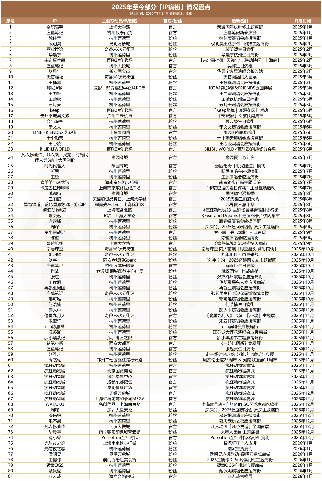 这股风潮有多猛?据雷报不完全统计,从2025年年初至今,全国范围内具有一定规模的IP痛街活动已超过80起。更值得关注的是,其活动密度自2025年暑期开始呈现爆发式增长——仅6月至今,就密集上演了64起,占全年总量的整整八成。