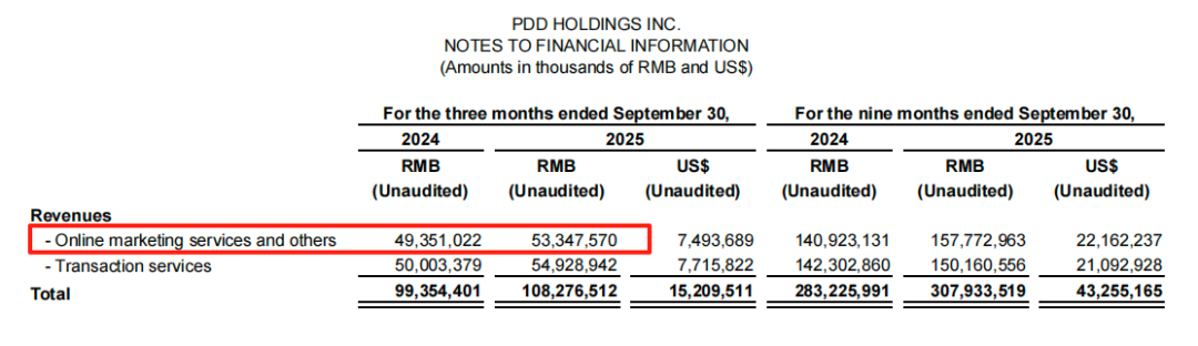 图片来源:拼多多2025年Q3季度财报