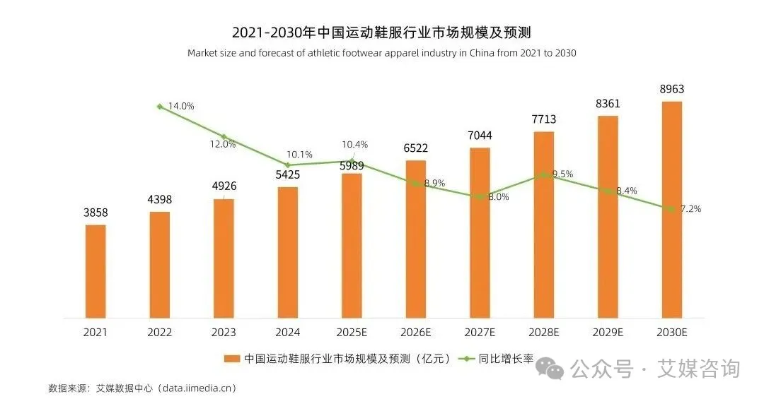 据艾媒咨询所发布的数据显示,2024年我国运动鞋服市场的规模约5425亿,2025年大概能够达到5989亿,同比增速超过10%。如果将这一视野放眼到全球市场,耐克和阿迪达斯在整体营收方面仍然是分列前两位的运动巨头。