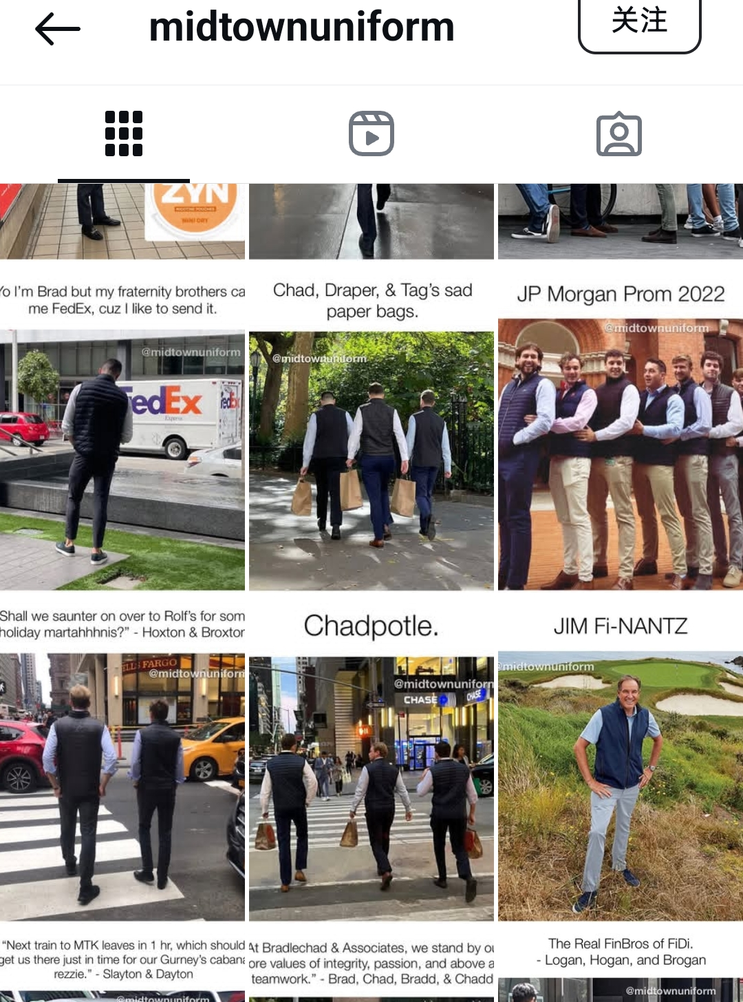 在名为midtown uniform的ins上,满是金融男穿巴塔哥尼亚背心的照片