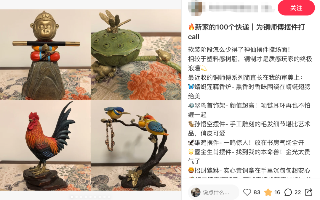 在社交媒体上,以铜师傅为代表的铜制工艺品,被网友们调侃作“中年人的泡泡玛特”。