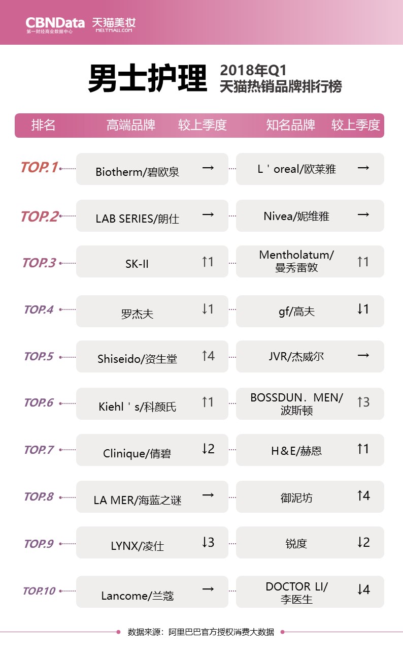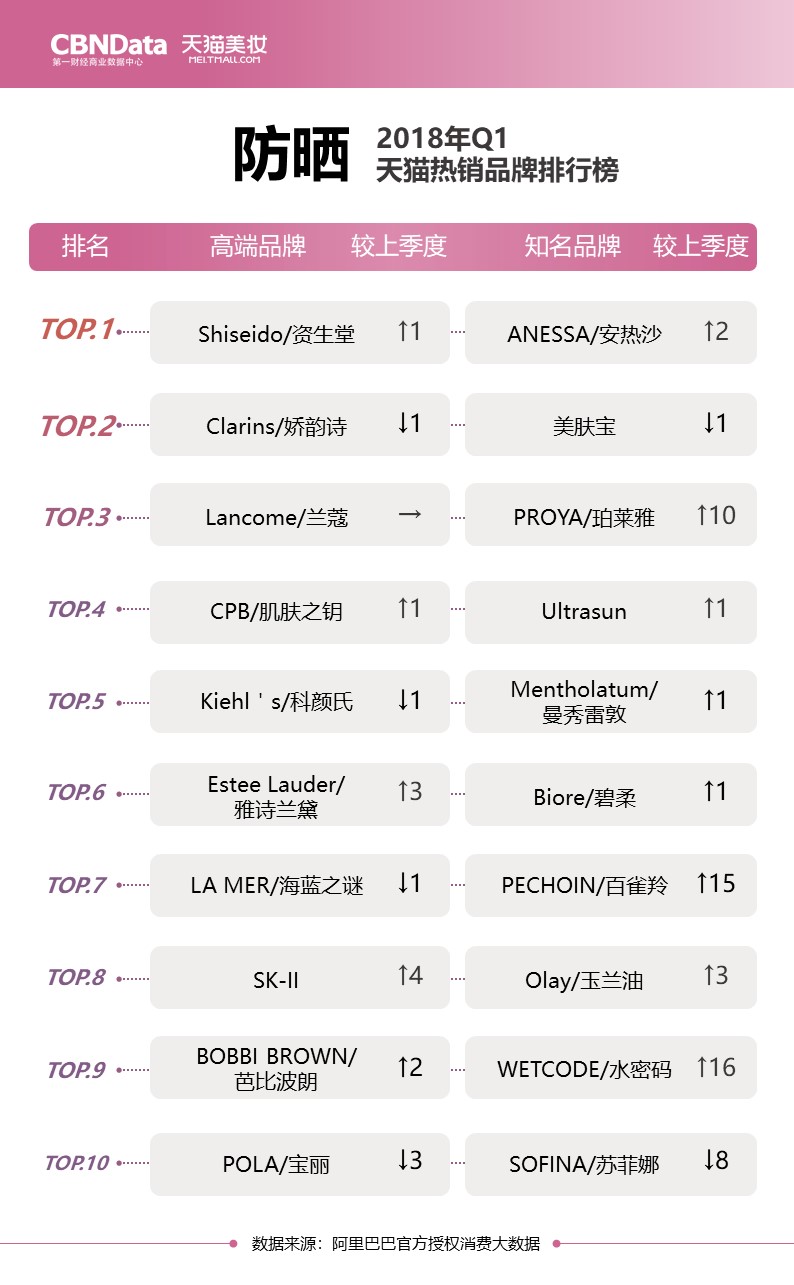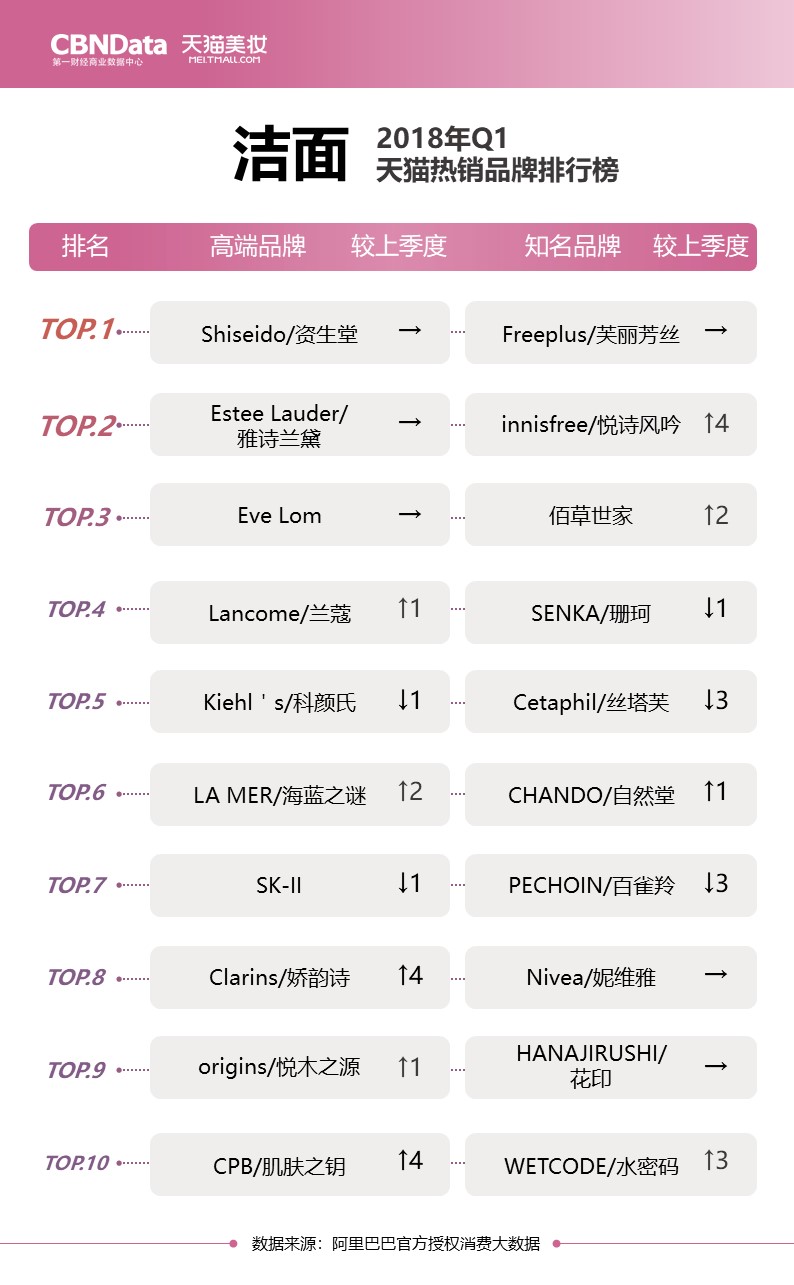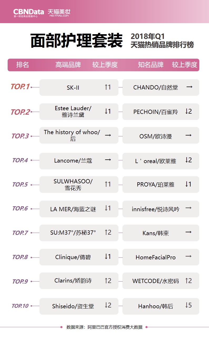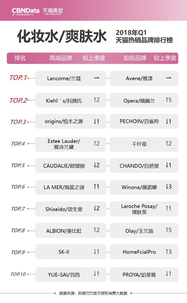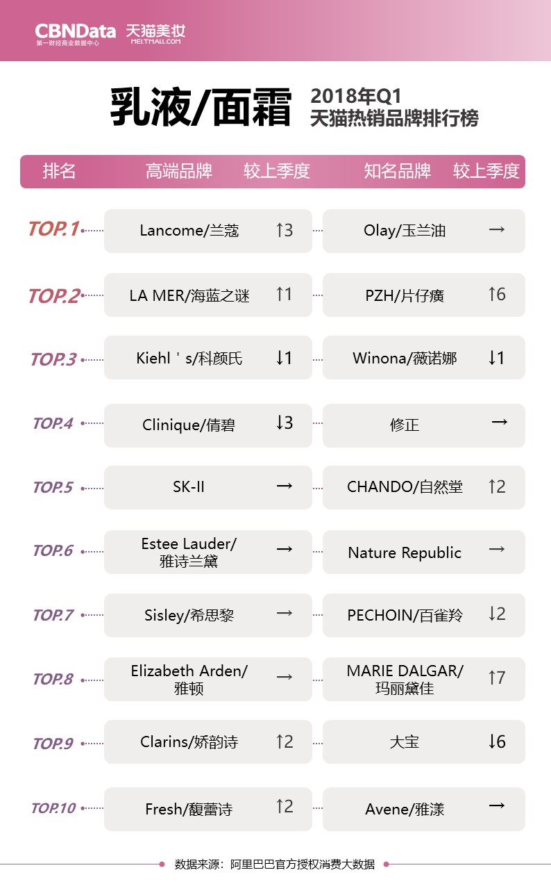 排行榜同时关注高端品牌与知名品牌,多角度解读“贵妇”和“小仙女”们分别最爱用什么;除此之外还有各上榜品牌的较上季度排名,揭秘品牌们的“七上八下”。
