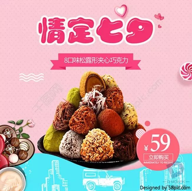 文案方面,能沾点边的尽量沾点边,尝试走走心,不能沾边的直接简单粗暴,抛出价格文案。例如卖家具的,文案可以写“七夕给TA一个温馨的家”,卖计算器的可以写“七夕甜蜜购,老公老婆记账用具”。