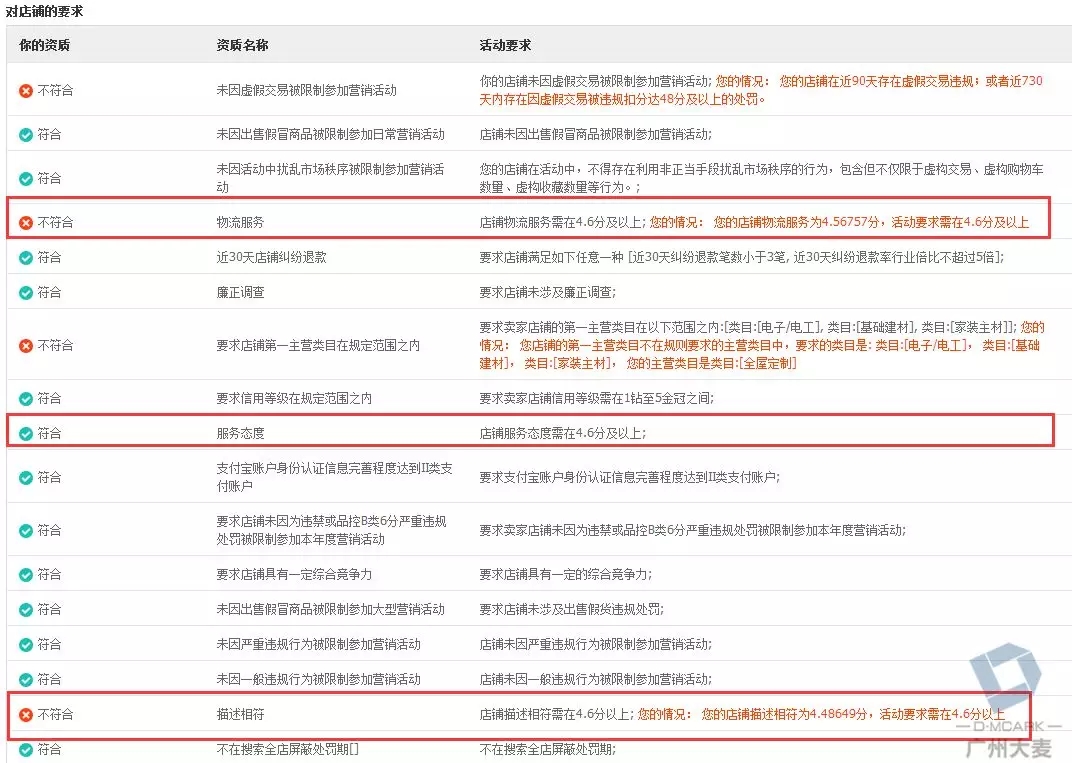 DSR低于一定程度,你会报不了活动,下半年的活动是非常多,质量也非常高的,大家都知道,淘宝的大旺季是在下半年,如果一个活动都报不了,基本上,你的店铺就会很容易被同行迎头赶上,所以不要觉得11月离8月还很远,一定要尽早开始排查问题,尽快解决。