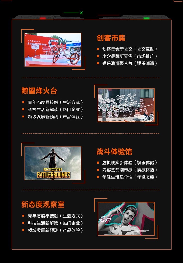此外,创业邦联合江小白、天怡研究院、思必驰、斗鱼、樊登读书会等企业共同打造创客市集、瞭望烽火台、战斗体验馆、新态度观察室等展区,将为与会者带来不一样的吃喝玩乐体验式展览!