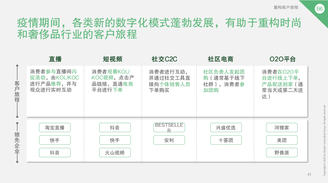 另一个品牌必须认识到的方面是,新的数字化和全渠道业态在疫情期间不断涌现,并将在疫情后成为一种常态。直播、短视频、社交电商等布局的完善和成熟将意味着品牌需要更好的触碰到消费者的各种触点。