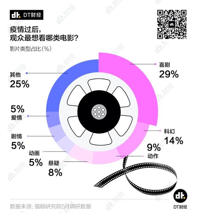 猫眼专业版的数据也显示,从今年2月份到5月份,期待去电影院观影的用户比例已经从54%上涨到88%,接近9成。