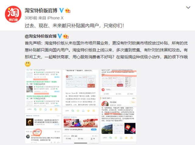 淘宝特价版官方辟谣,所有的优惠都只补贴国内用户